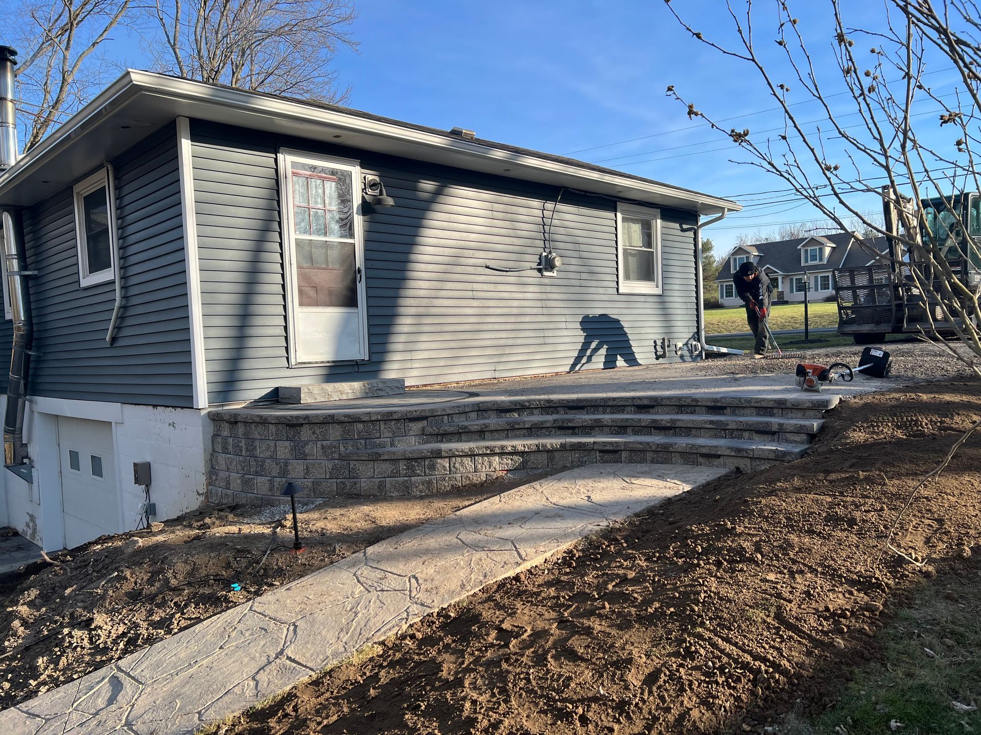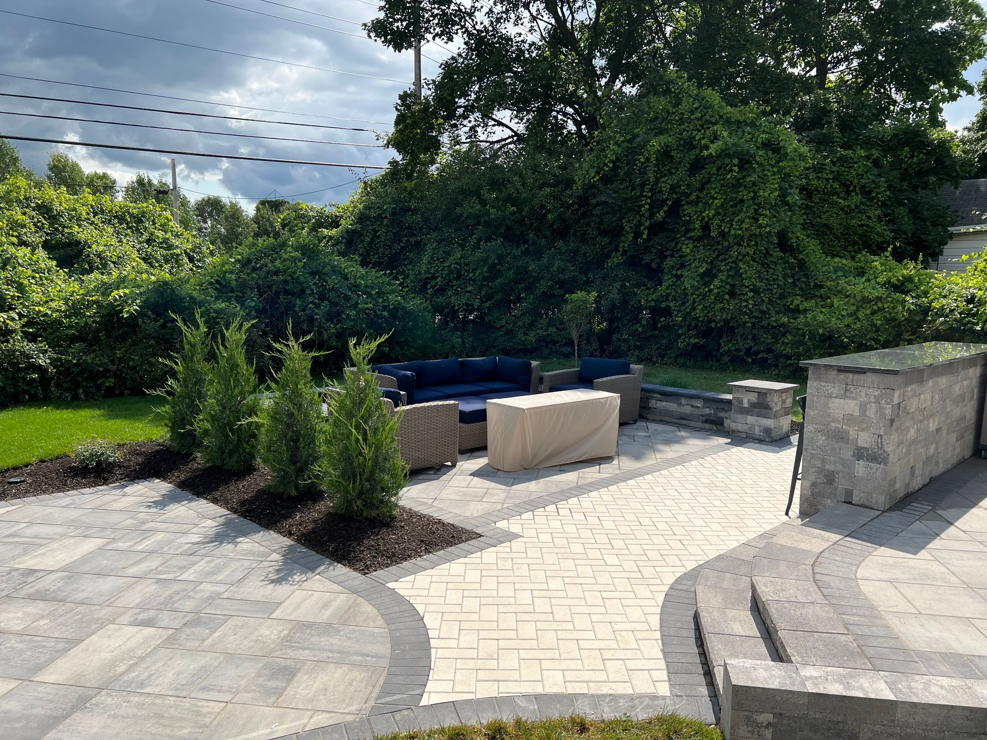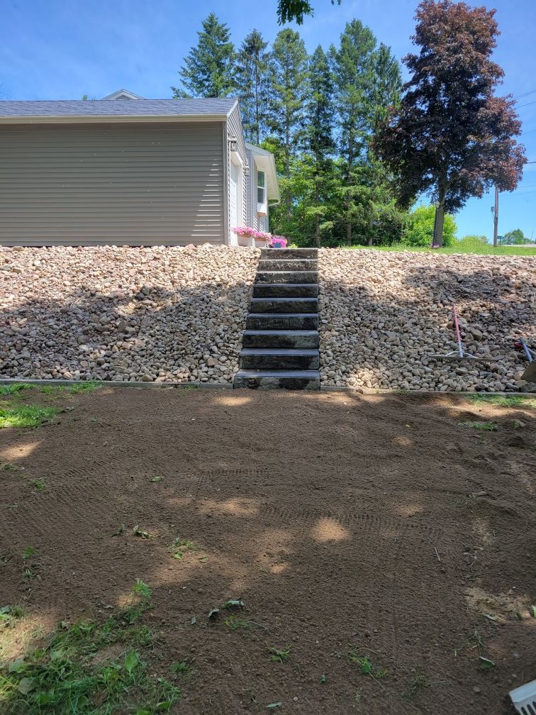 Examples of our work in Batavia, NY include hardscaping services, specialty landscape services, outdoor kitchens, shrub trimming, retaining wall installation, excavation services, drainage solutions and more.